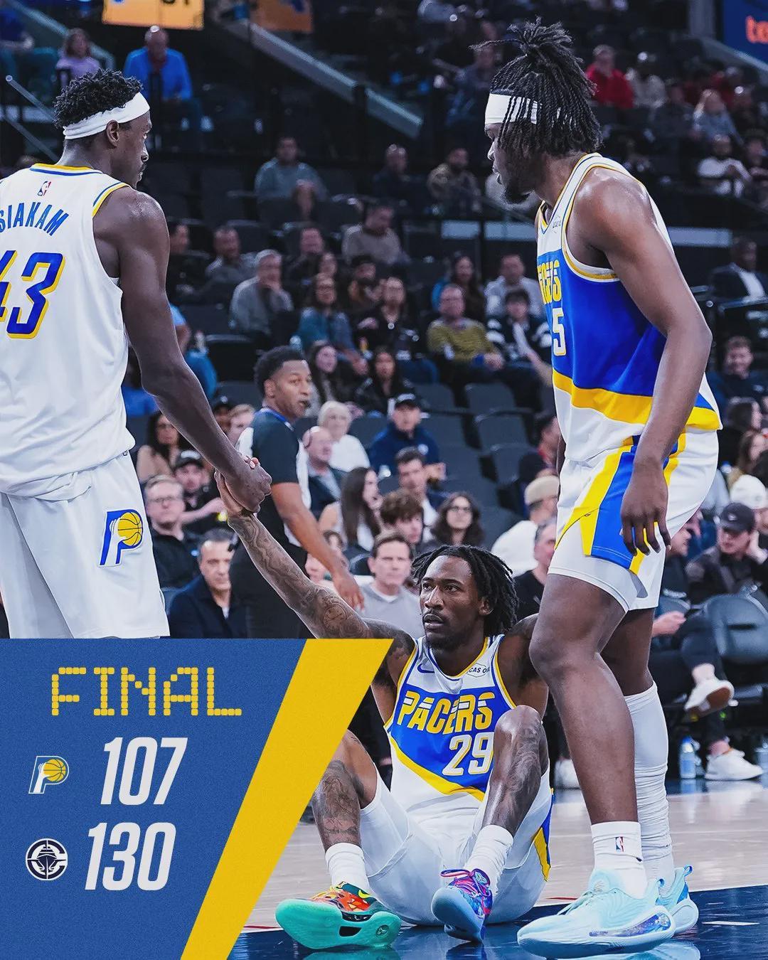 接下来看看今天的比赛,四节比分如下(步行者在前):25-42、26-21、26-39、30-28。此役过后,快船拿到本赛季第30场胜利。目前快船30胜31负依然排名西部第9,仅落后第8的勇士1个胜场,距离胜率50%只差1场胜利。